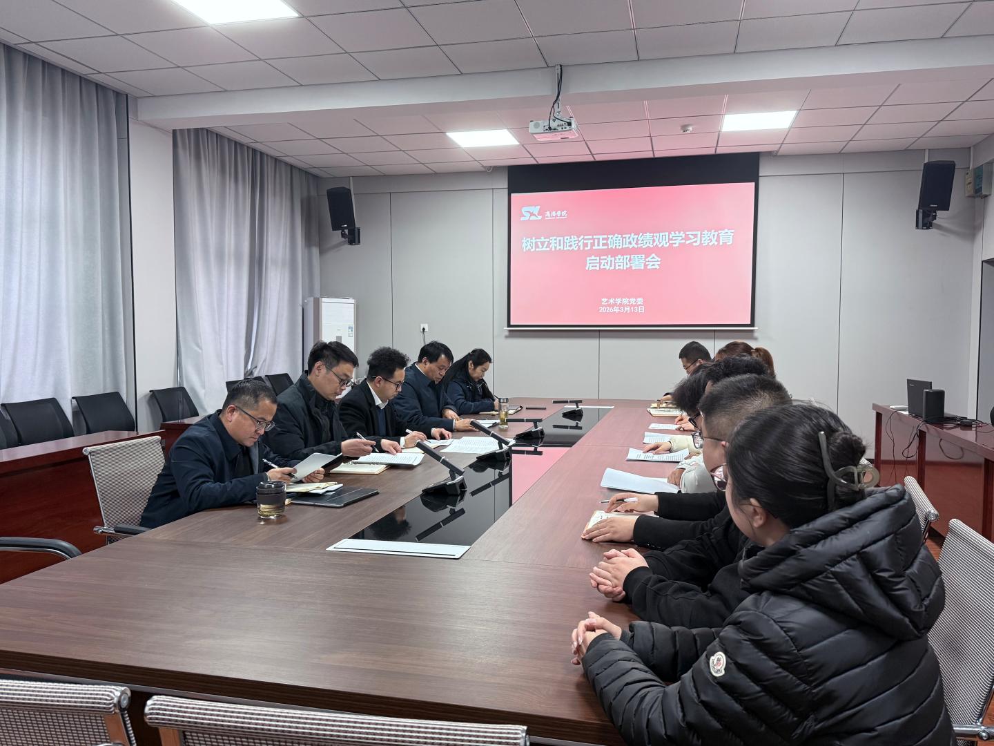2024-10-193月13日下午,艺术学院召开树立和践行正确政绩观学习教育启动部署会,传达学习中央、省委及学校党委相关会议和文件...