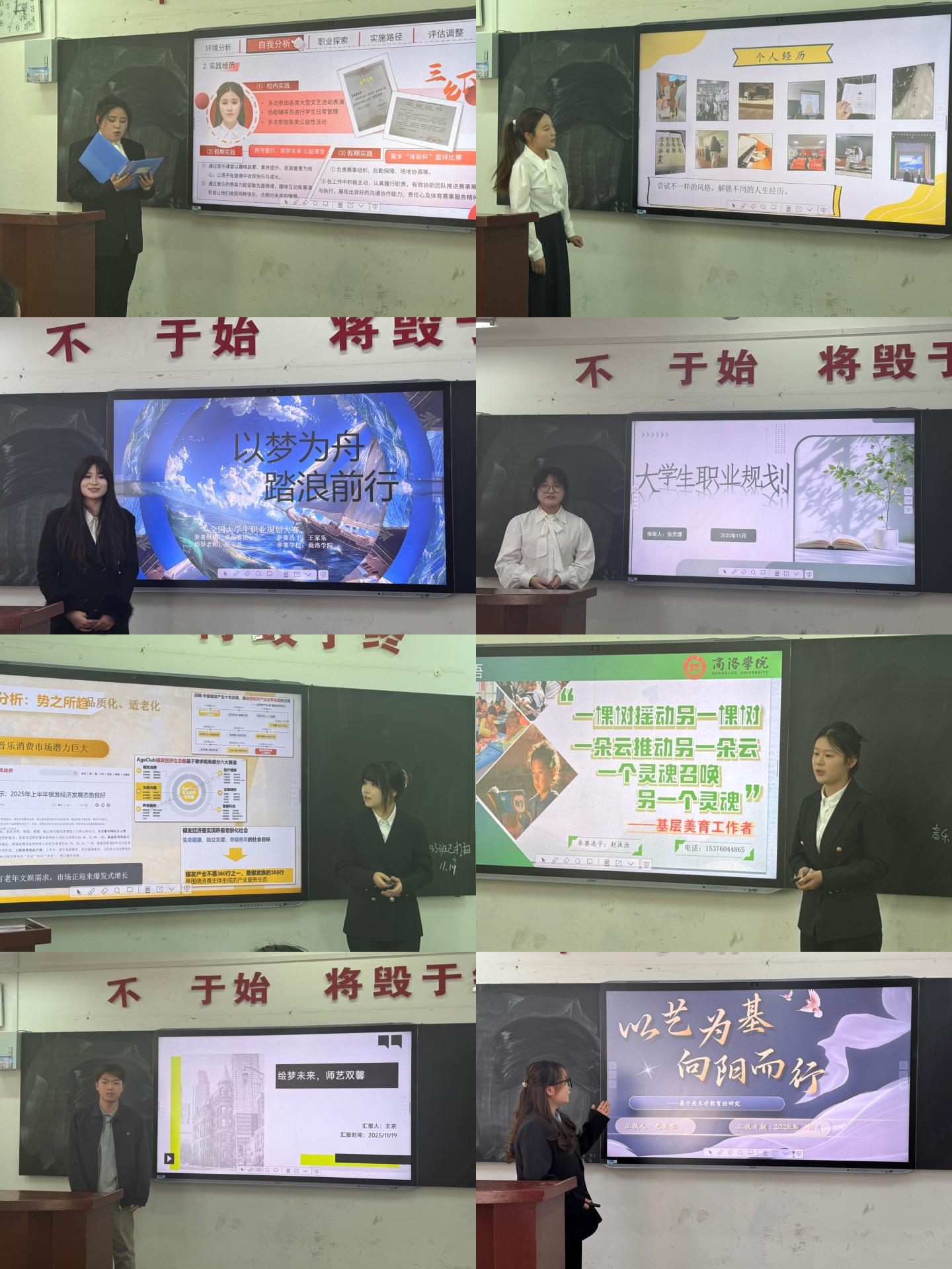 比赛分为成长与就业两个赛道。成长赛道选手围绕生涯发展报告进行5分钟主题陈述,就业赛道选手则聚焦个人简历与岗位匹配度进行综合展示。参赛选手们或着眼长远发展,系统阐述职业目标选择、实践路径与动态调整;或直面实战需求,全面展现专业素养、综合能力与目标岗位的高度契合。现场陈述逻辑清晰、自信从容,充分体现出艺术学院学子对个人未来的深入思考与充分准备。